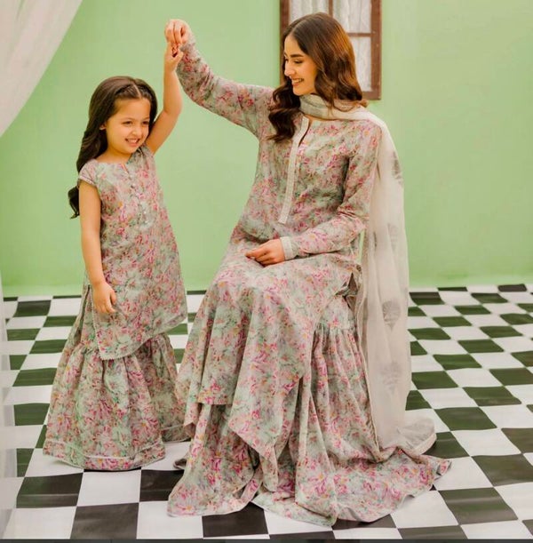 Shirt: Printed lawn with embroidered border