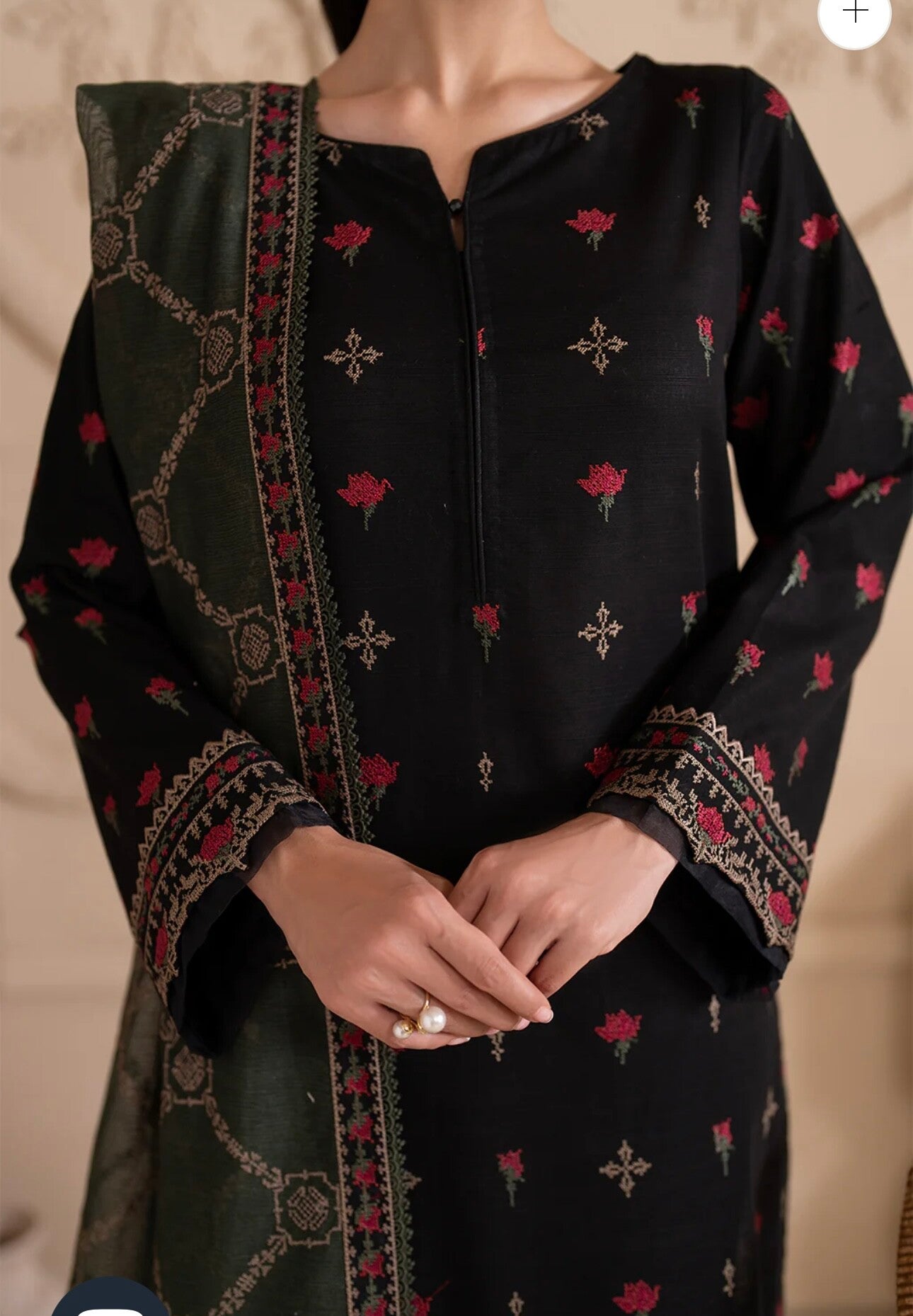 Sleeves Lace: Embroidered Khaddar (0.85 M)